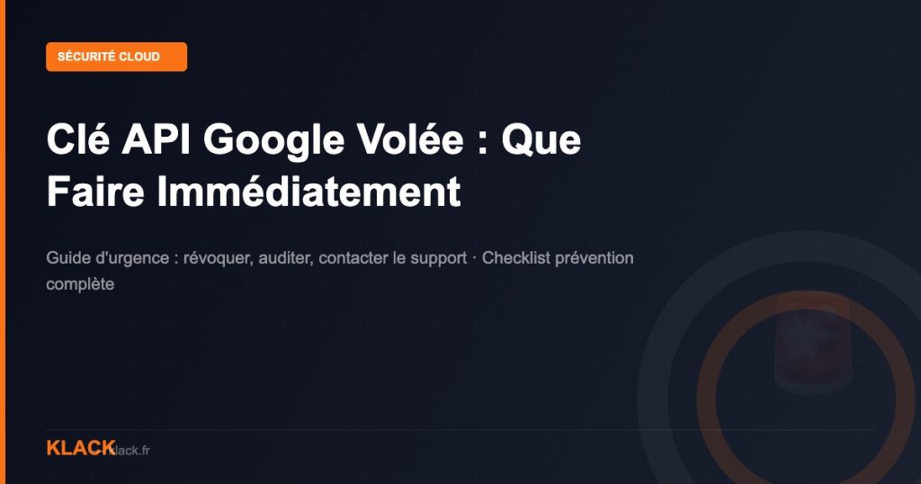 Votre clé API Google a été volée ? Guide d’urgence complet : révoquer, auditer, contacter le support billing, puis prévention avec restrictions IP, rotation et Secret Manager.