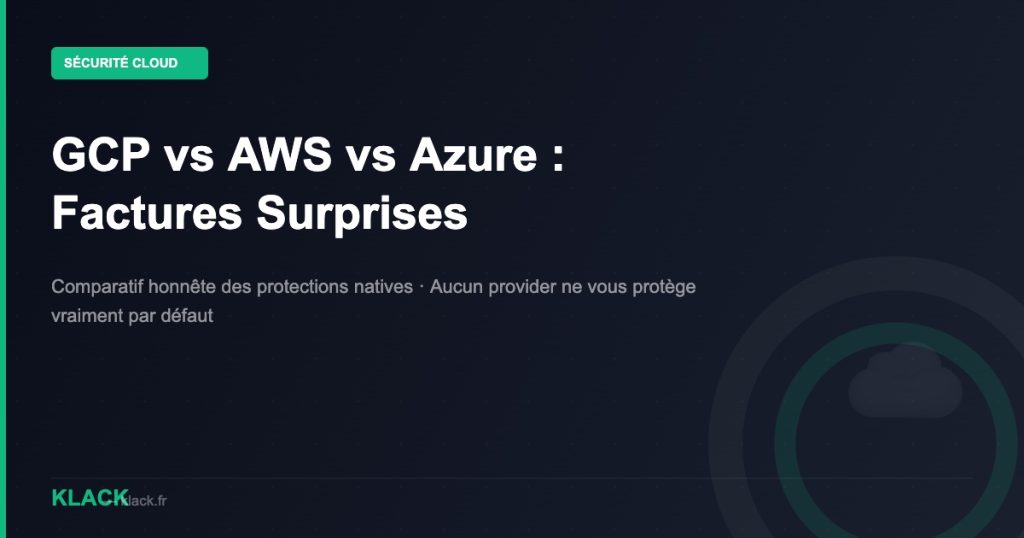 Comparatif honnête : GCP, AWS et Azure face aux factures surprises. Budget alerts, hard caps, kill switches — aucun provider ne vous protège vraiment par défaut. Voici ce qu’il faut configurer.