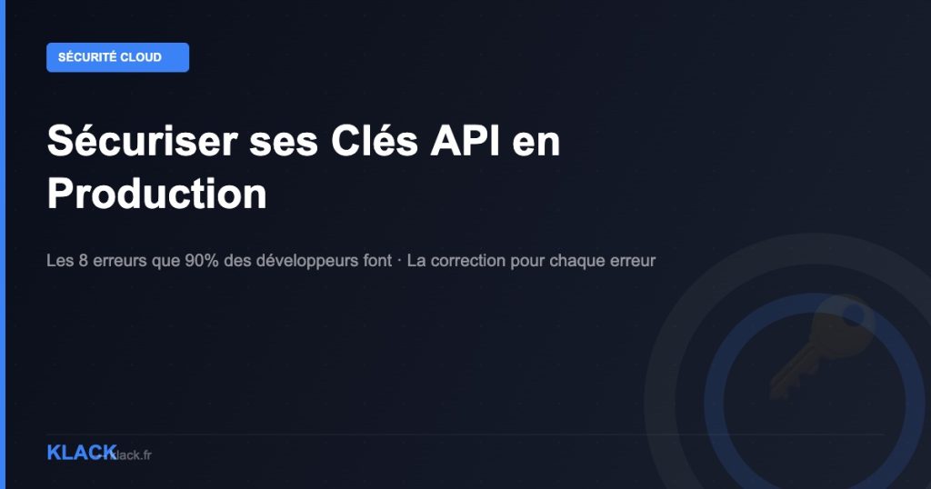 Clés en front-end, .env committés, pas de rotation, pas de monitoring — voici les 8 erreurs les plus fréquentes sur la sécurisation des clés API en production et comment les corriger.