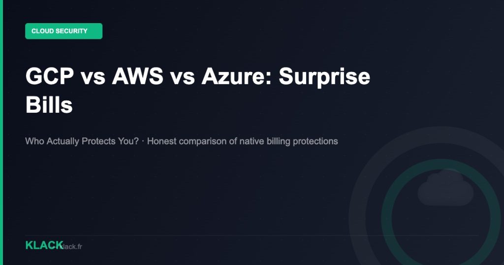 Honest comparison: GCP, AWS, and Azure against surprise cloud bills. Budget alerts, hard caps, kill switches — no provider truly protects you by default. Here’s what you must configure.